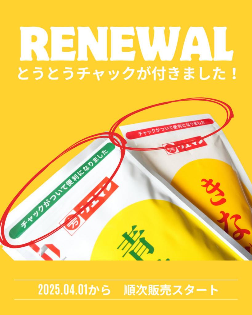 きな粉、青きな粉 リニューアル(チャック付き)のお知らせ